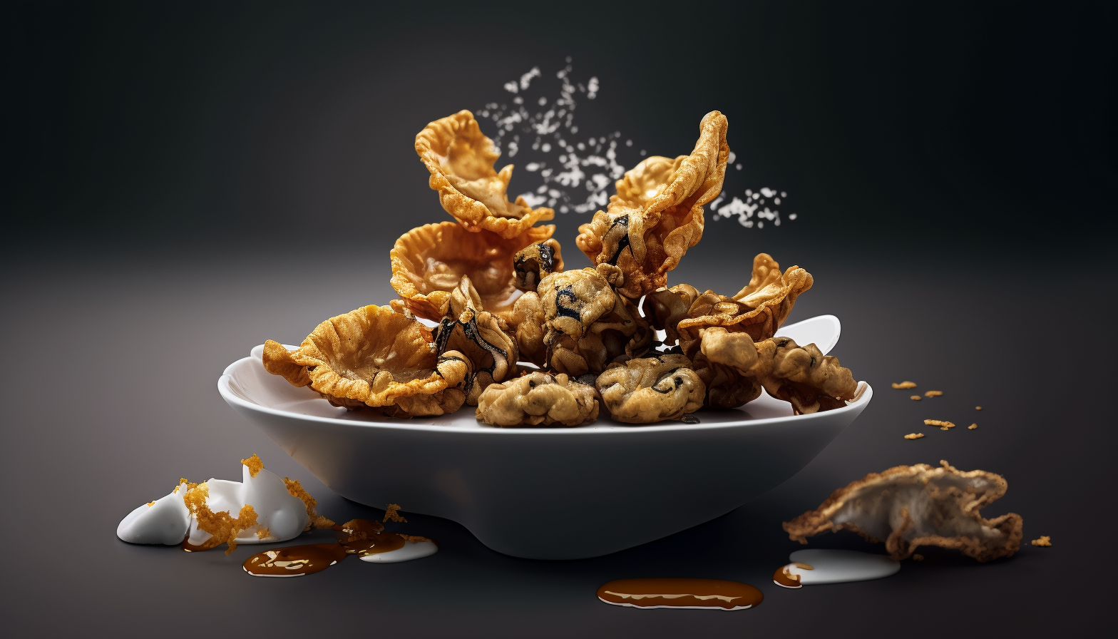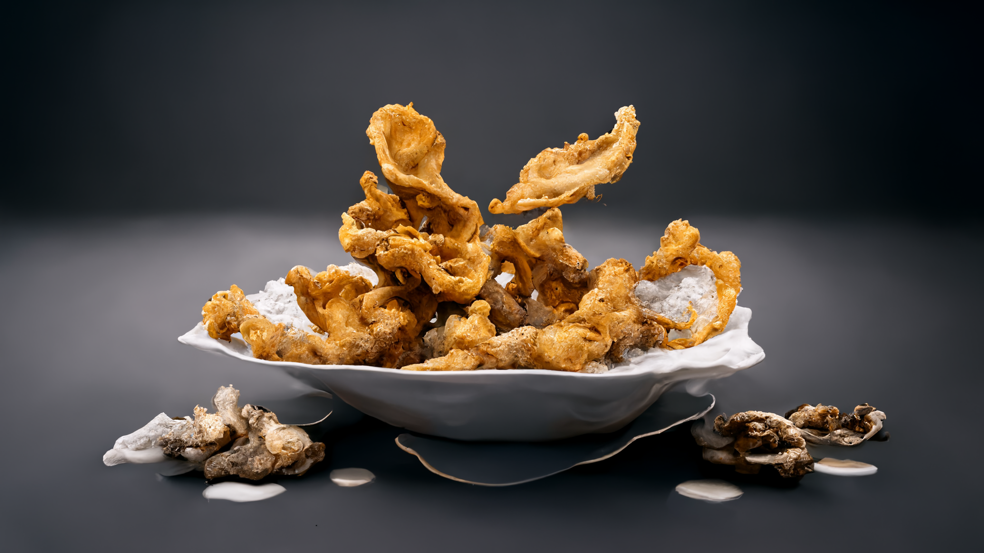 - Dip each oyster mushroom piece into the wet mix, then coat in the vegan fry mix.