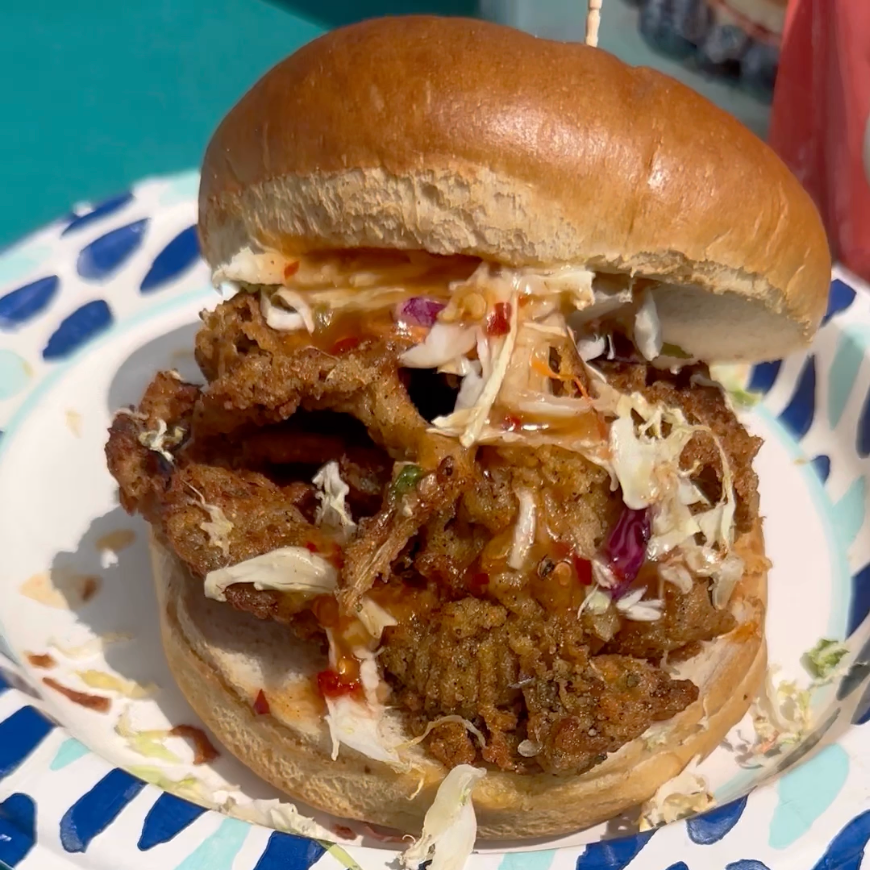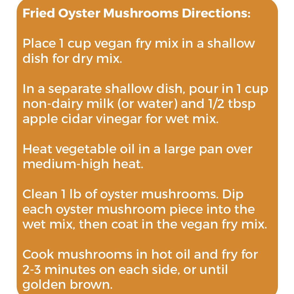 - Dip each oyster mushroom piece into the wet mix, then coat in the vegan fry mix.